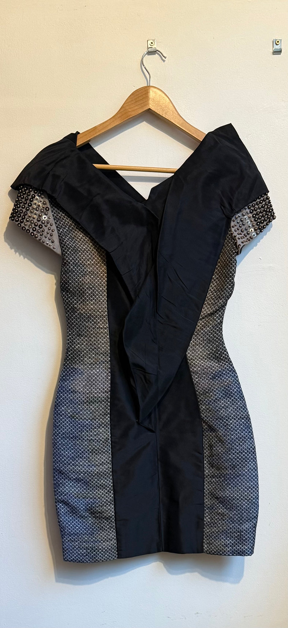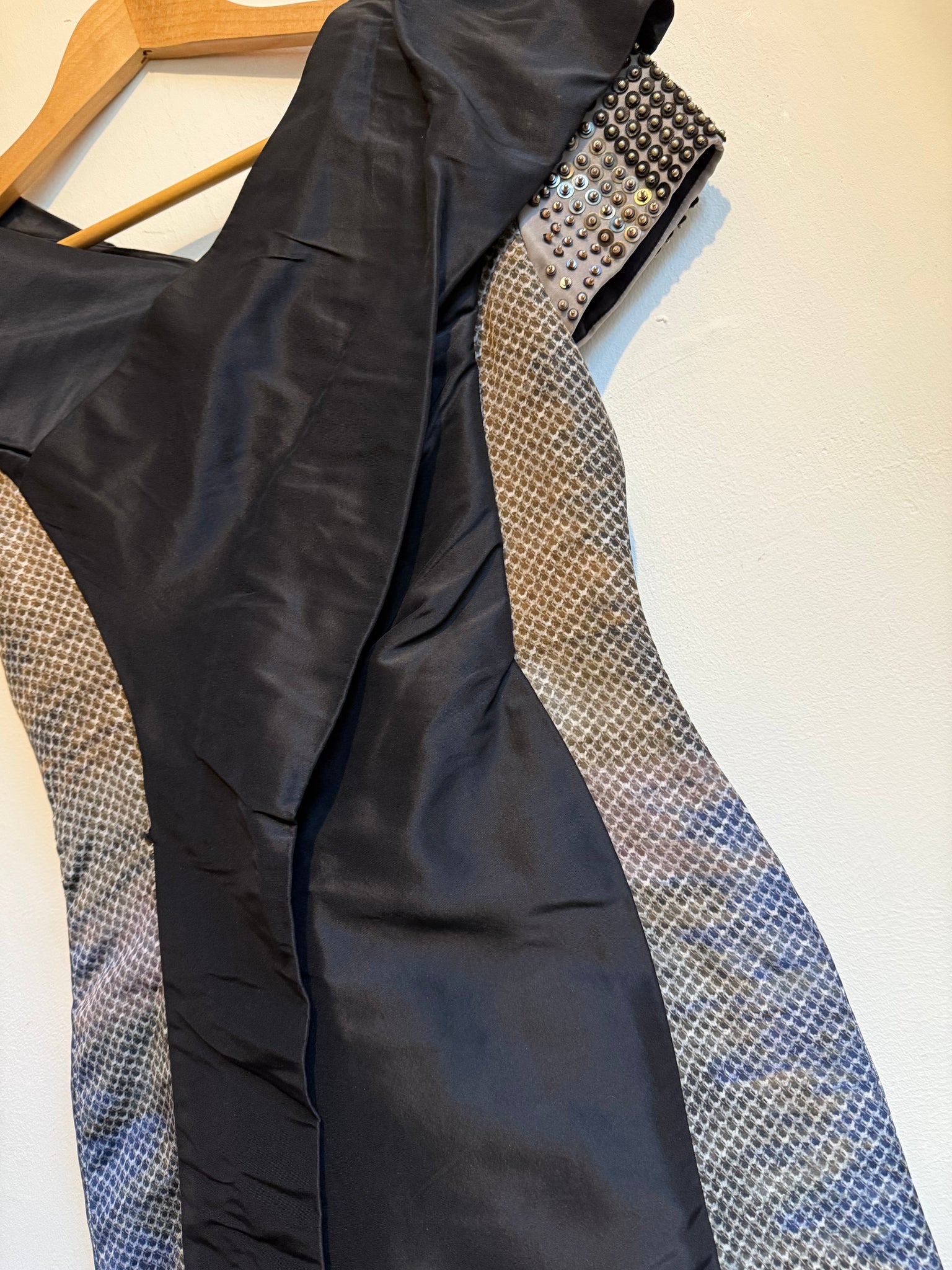 Black and snakeskin mini dress with stud cap sleeve detailing