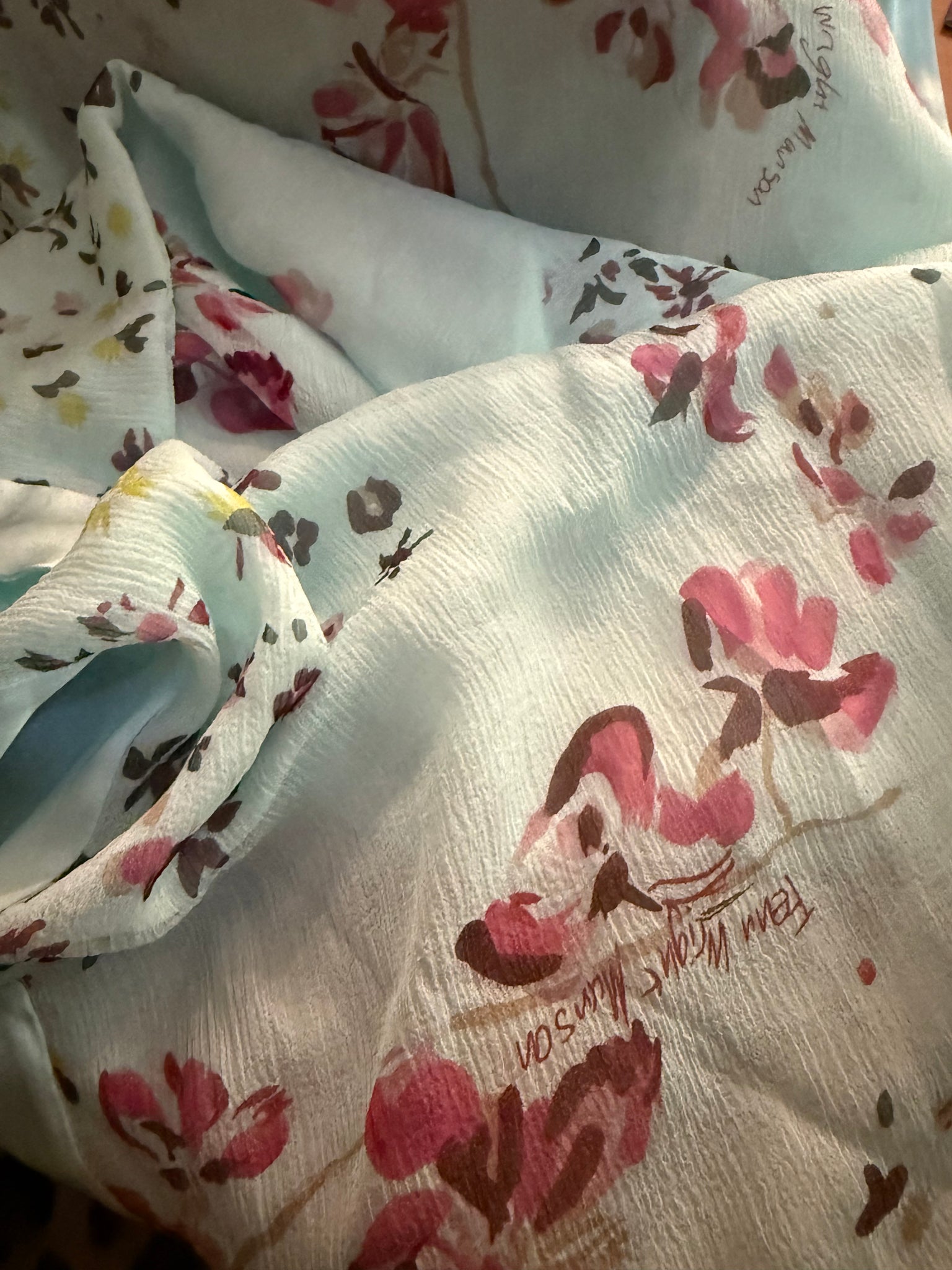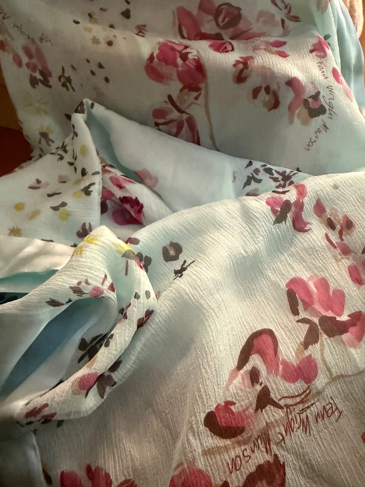 Pastel floral long silk scarf