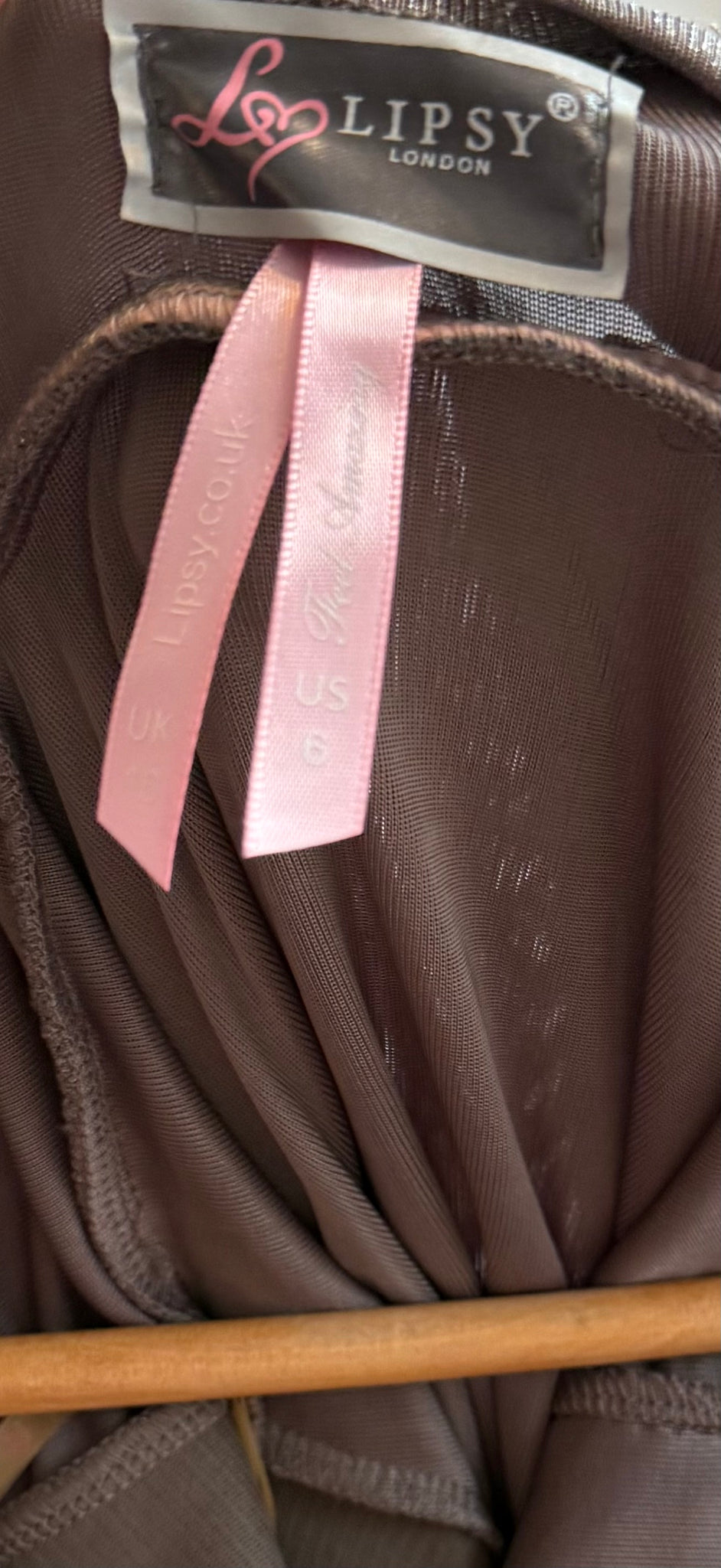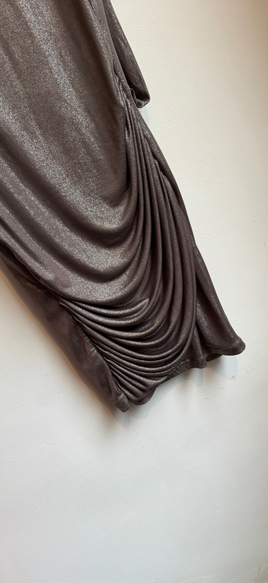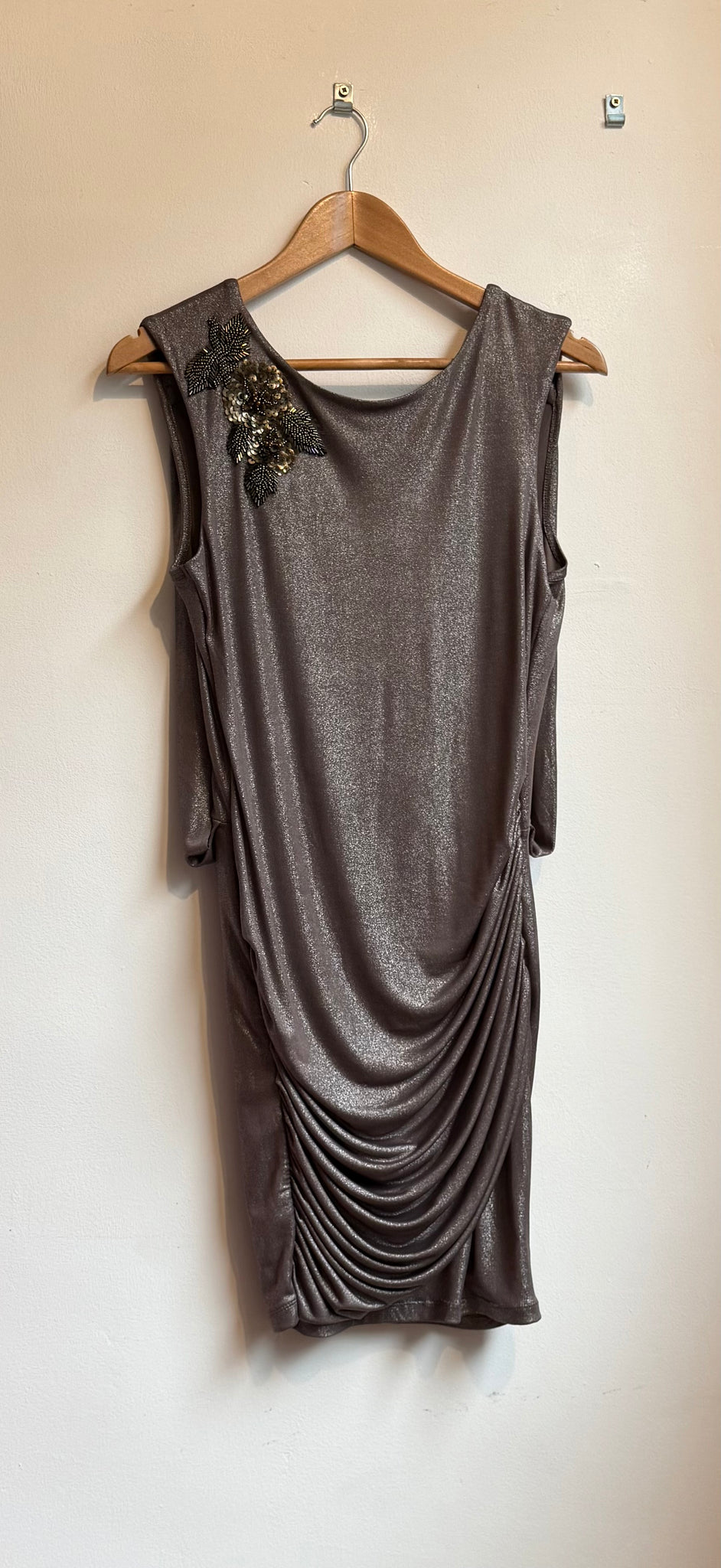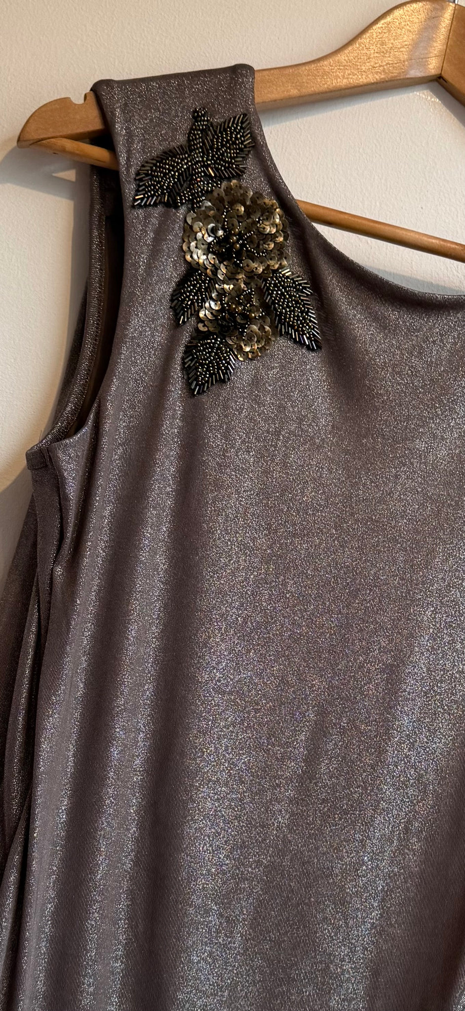 Bronze dress with shoulder detains and drop back